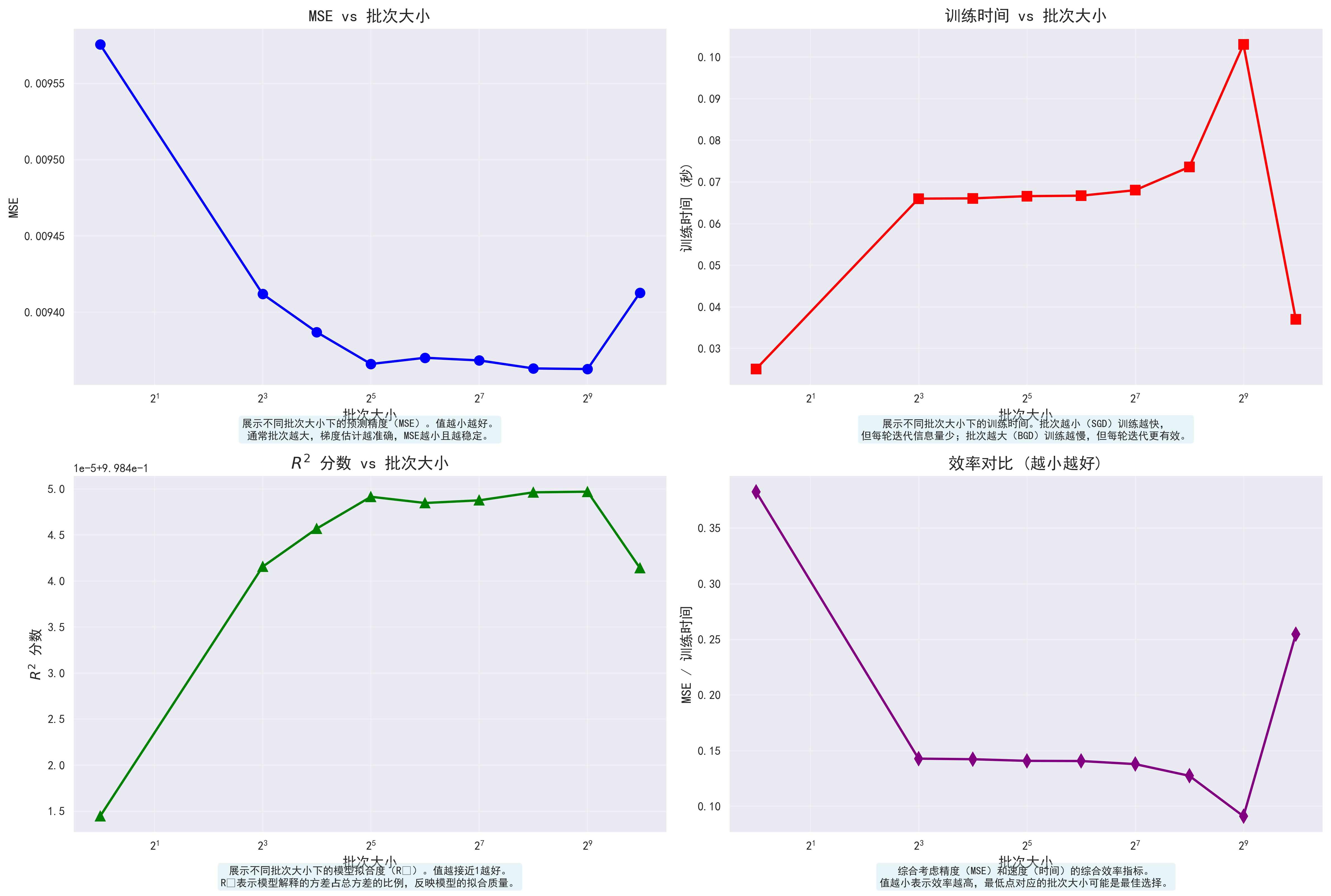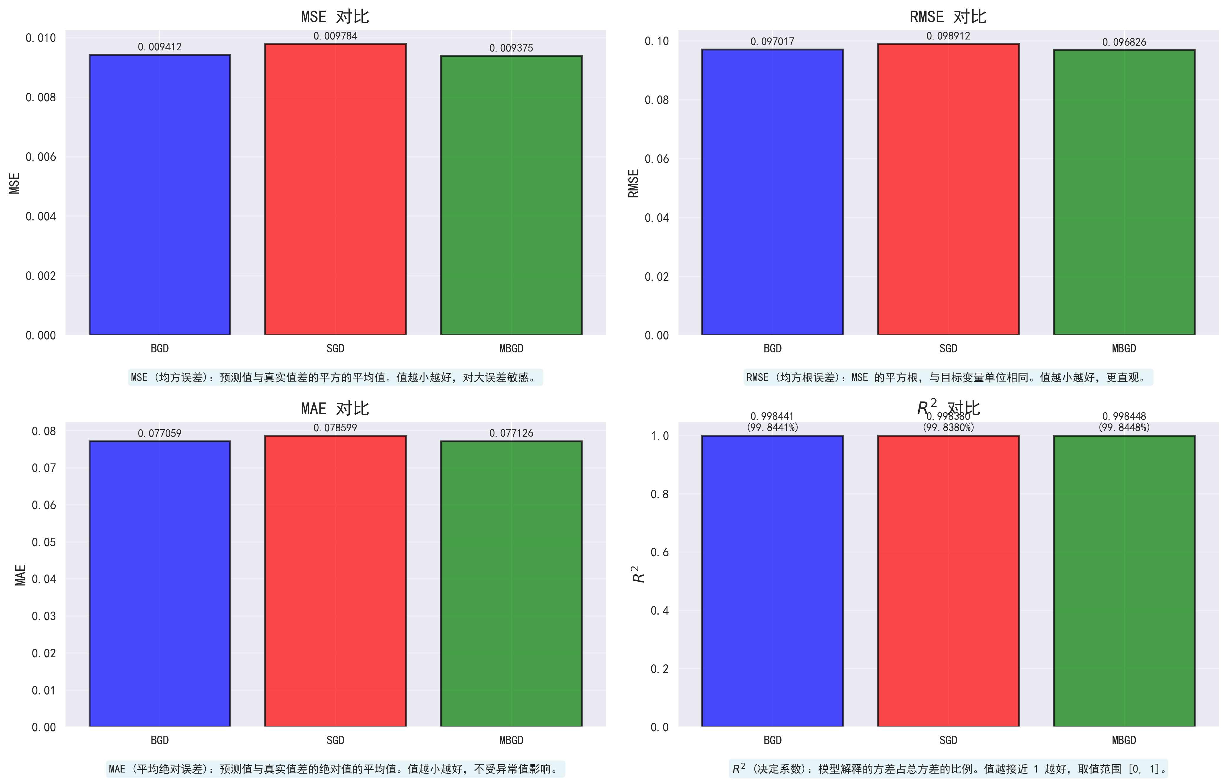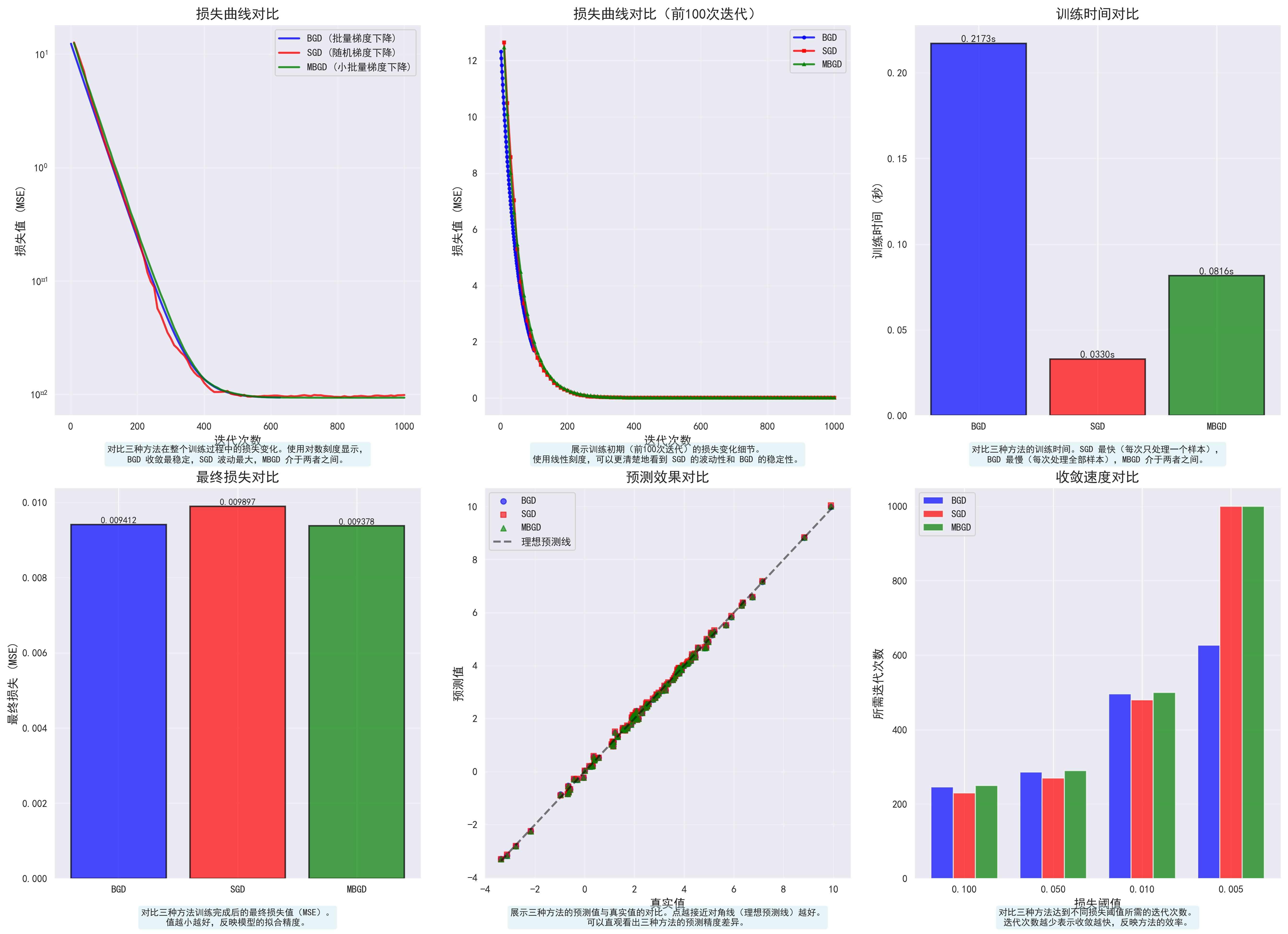 MBGD (batch=512) - MSE: 0.009363, R²: 0.998450, 时间: 0.1030s
