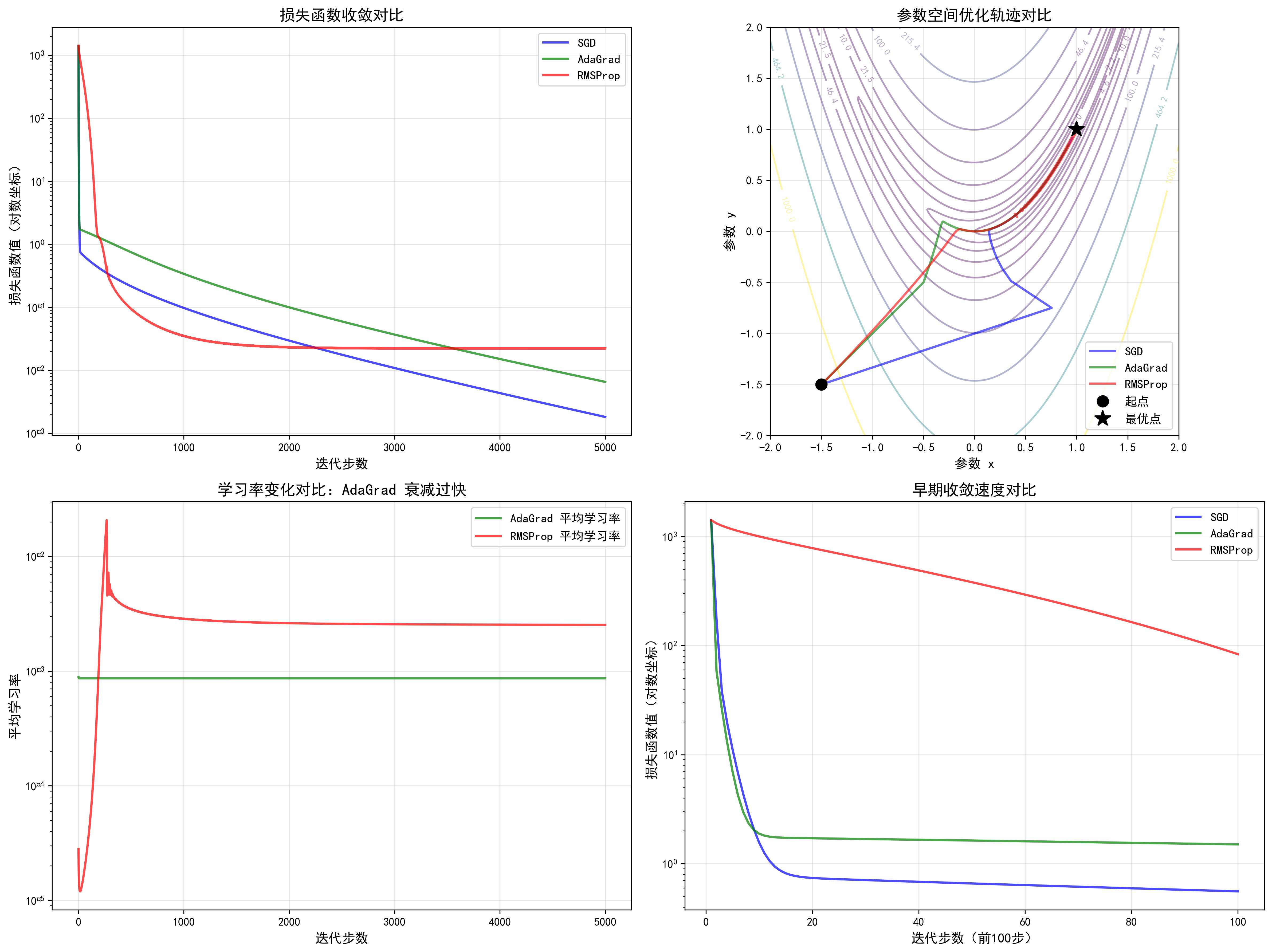 | 适用场景 | 简单凸优化 | 稀疏梯度问题 | 深度学习、非平稳问题 |
