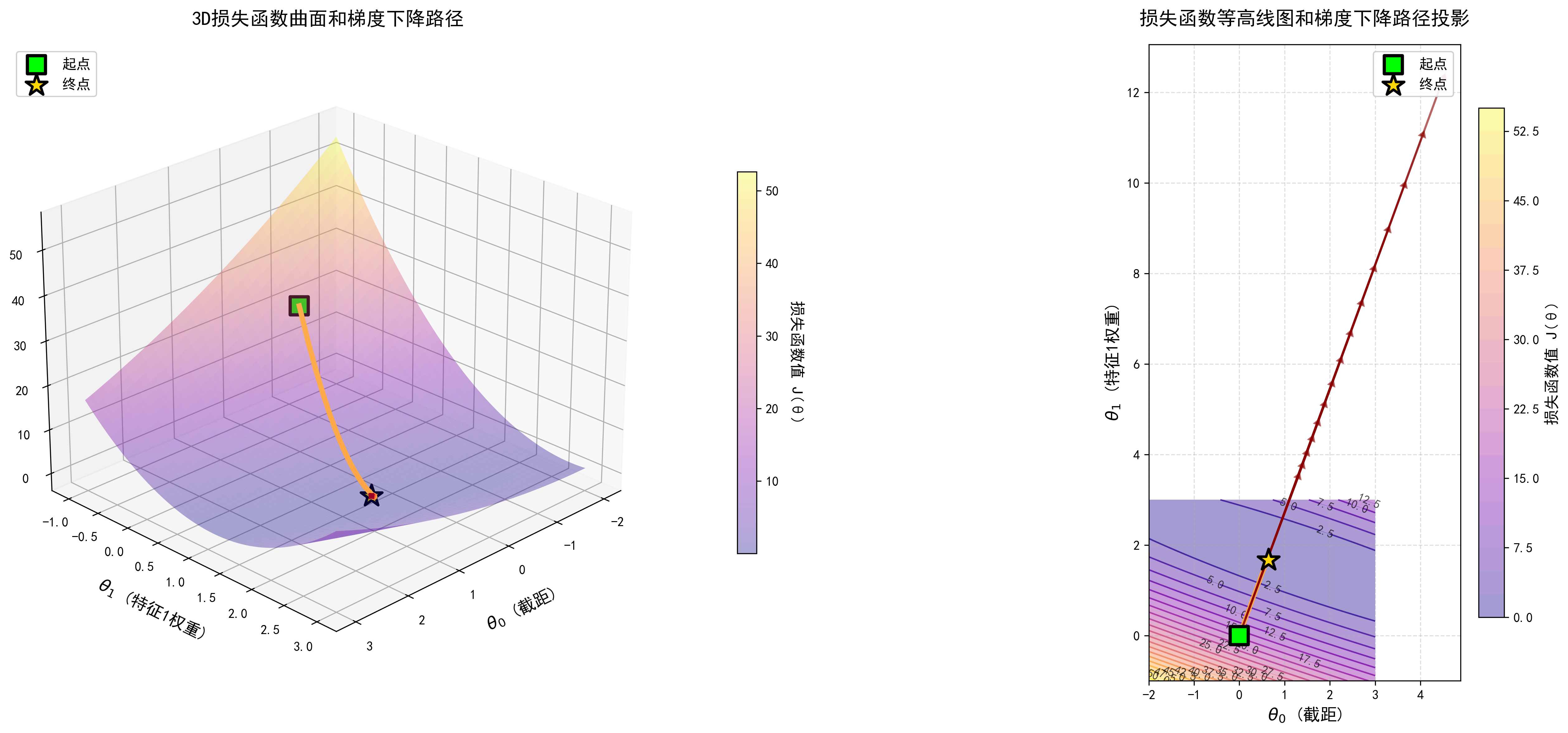 多元线性回归是机器学习中最基础的模型之一,用于预测连续值。我们使用梯度下降法来优化模型参数,找到使损失函数最小的参数值。