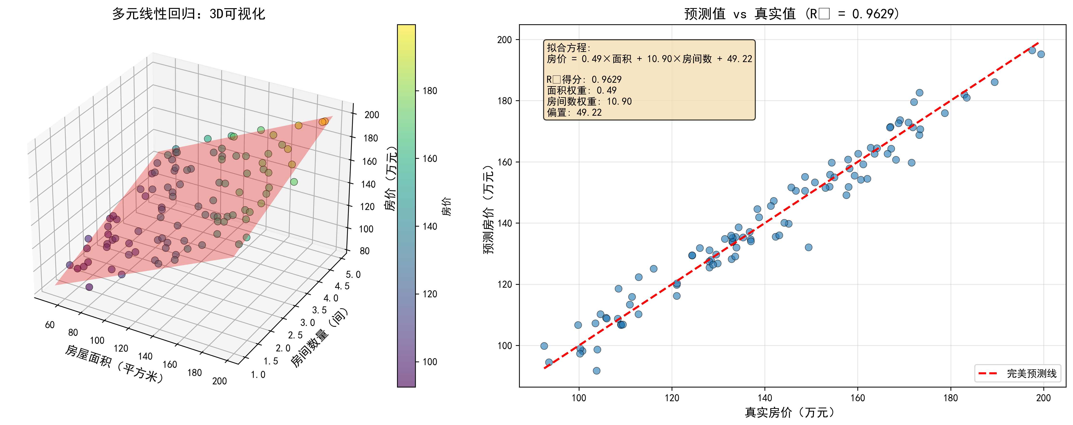 print(f"成绩 = {model.coef_[0]:.2f}×学习时间 + {model.coef_[1]:.2f}×作业完成度 + "